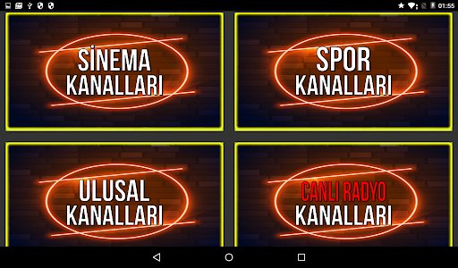 Kategorilerimiz, yabancı ve türkçe olmak üzere radyo kategorilerimiz bulunmaktadır. Tüm Canlı TV kanallarının yanı sıra tüm türkçe film kanalları da ve yabancı kanallar olmak üzere uygulamamızda yer almaktadır.