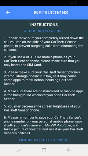 PLEASE READ THE FOLLOWING INSTRUCTIONS BEFORE DOWNLOADING CARTHEFT SENSOR LITE.