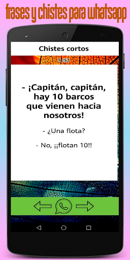 ถ้าคุณชอบแอป และคุณต้องการให้เราปรับปรุงต่อไปได้คะแนน 5 ดาวและแบ่งปันกับเพื่อนของคุณ! - ตลกสั้น ๆ ทั้งหมดนอกเหนือจากการเป็นอิสระพวกเขาเป็นภาษาสเปน และบางทีคุณสมบัติที่ยิ่งใหญ่ที่สุดของแอพตลกที่ดีนี้คือคุณสามารถส่งเรื่องตลกของคุณที่สร้างขึ้นในทีมสนับสนุนของเราเพื่อเพิ่มพวกเขาในคอลเลกชันและคุณสามารถเห็นเรื่องตลกของคุณทั่วโลก พวกเขาตลกตลกที่อยู่ในการกำจัดของคุณเพื่อแบ่งปันโดยตรงกับ whatsapp โดยตรงด้วยการคลิกครั้งเดียวเพื่อเพิ่มความสว่างให้กับเวลาที่จำเป็นและจะทำให้เกิดประกายไฟของอารมณ์ขันและความสนุกที่คุณต้องการทั้งกับเพื่อนและครอบครัวของคุณ ตลกตลกเป็นแอปพลิเคชั่นอารมณ์ขันที่ดีที่สุดพร้อมวลีตลกอย่างไม่น่าเชื่อสำหรับมือถือของคุณคุณสามารถบันทึกแชร์กับเพื่อนของคุณโดย WhatsApp, หมายเหตุ: