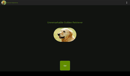 The app takes a random animal name and adds a random adjective to the start. If you've got an internet connection it'll also show you a picture of the animal.