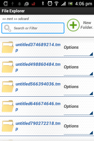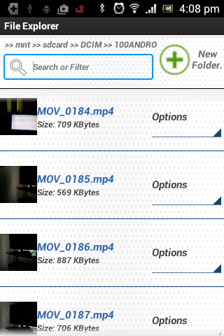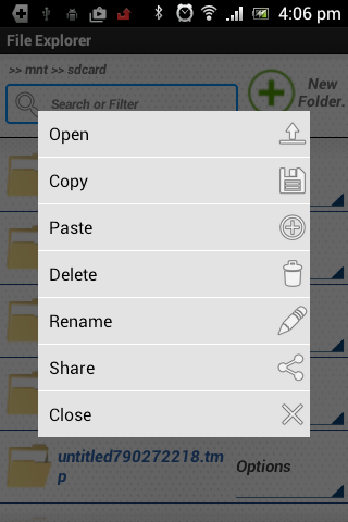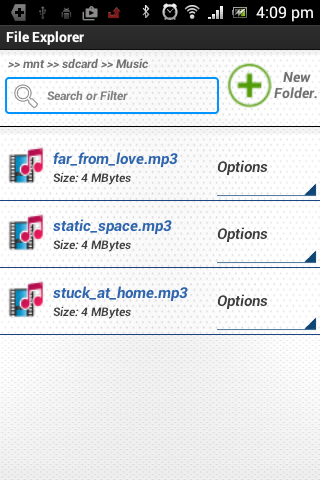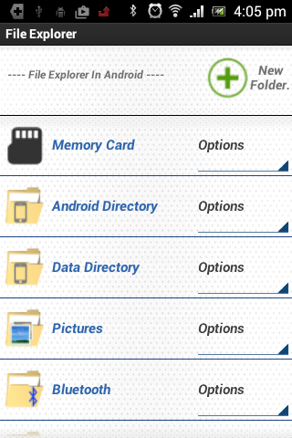 Android File Browser. Browse By the different folders and files on the device. operations view, copy, paste, and delete files. Single application