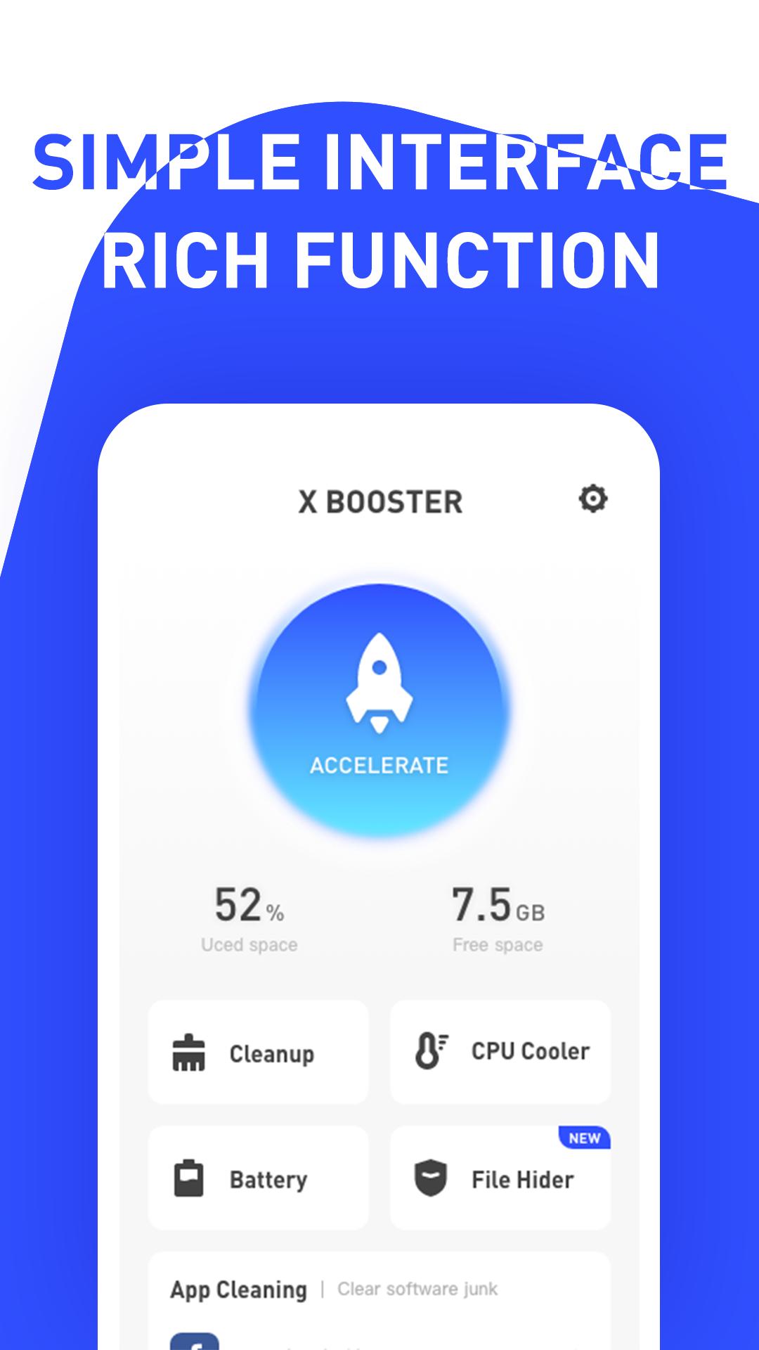 XBooster helps keep your phone fast and clean. This is an amazing cleanup app that can speed up your phone, easily clean annoying background processes, and professionally clean major common app junk