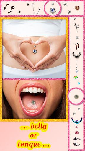 This amazing app lets you try different piercing styles without any pain! Check out these amazing ones for free! A lot of jewelry for face, tongue, lips, nose, cheek and eyebrows for men and women; tragus earrings, belly button rings and much more!