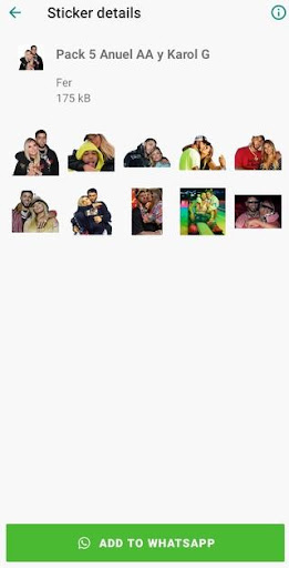 The application has 13 pack. In each pack there are 10 or 9 Stickers except one that is 14. Two of the pack is from Anuel AA and Karol G the couple of the year. The other packs are from Anuel AA, some carry phrases and others do not. Therefore the application contains about 130 Stickers. It also contains her classic Stickers with the phrase Bebesita or Brrr.