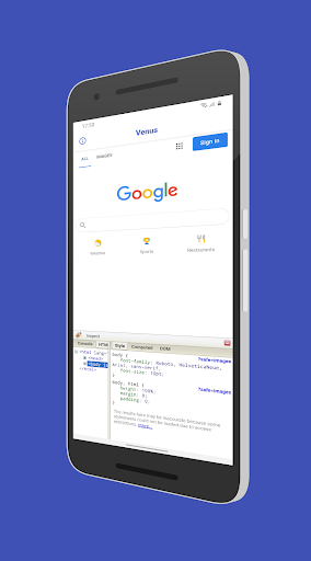 With the help of the Venus you can see the source codes, site styles, and you can also experiment with the console.