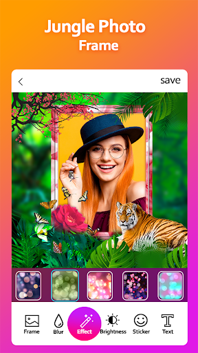 Jungle Photo frame is nice app that lets you customize your photos. Choose a photo from your gallery or take it with the camera of your device, select a frame and generate your photo.