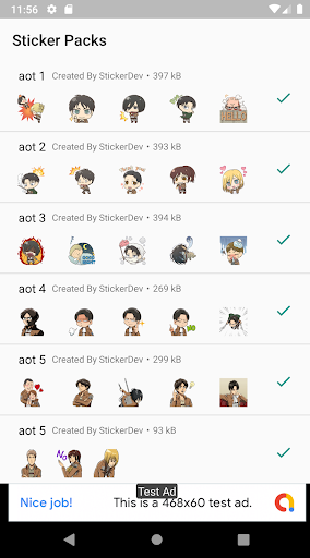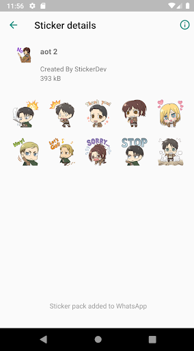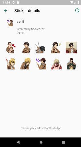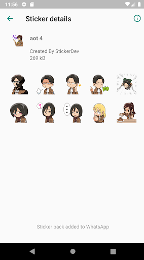 this application is an application that we made after making the wa sword arrt online sticker application, the name of this application is an attack on the titan Sticker Wa in this application there are many aot sticker images such as eren mikasa armin and many more which will certainly be fun and interesting