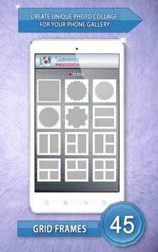 Capture treasured moments from a day at the beach or a summer picnic in a delightful summer collage. Add a spark to your summer photos, make them special and more interesting. ♥ Summer Photo Editor ♥ picture editing software lets you add photos from your phone gallery or directly from your camera. Just select a few photos and get an awesome photo collage for your new Samsung Galaxy phone. You can move, stretch and zoom your photos around until they fit photo collage template. In only a few seconds an amazing “photo collage” is ready, absolutely free.
