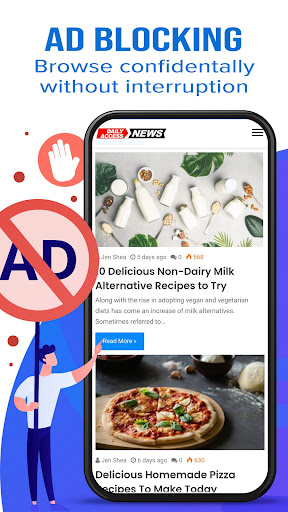 Browser app is secured and is based on the latest technologies. The built-in VPN helps users to navigate through the web without worries of being tracked.