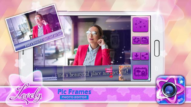 ✫ Make a real photo wonder out of your funny pictures or love images by using the best picture editor with text on the app market. Download ✫Lovely “Pic Frames” Photo Editor✫ and enjoy putting your beauty pictures into photo grid frames designed to suit your image editing needs. Thanks to this photo warp software, instafame becomes easy to attain. Take hold of your love candy camera, take a couple of cute girl selfie photos and put your new piclab to use. Enclose these precious moments with cool teen picture frames free of charge, add some crazy camera effects