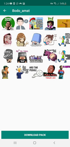 La aplicación Cool viene que contiene una colección de divertidos adhesivos divertidos 2021 Indonesia que se utilizará en las aplicaciones de WhatsApp o WA con una colección de pegatinas que se burlan y divertidos. Hacer chat wa mu es más atractivo y divertido al usar esta aplicación, exprese su corazón para usar la adhesiva divertida WA hilarante Indonesia WastykerApp y es adecuado en uso en todos los tipos de teléfonos inteligentes y también ahorre cuota porque se puede utilizar cuando se puede utilizar en Desconectado.