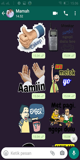 5).Öffnen Sie Ihre WA -Anwendung und wählen Sie dann das Aufklebermenü.Dann finden Sie mehrere Aufkleber, die Sie gerade in Ihrer Chat -Anwendung heruntergeladen haben.