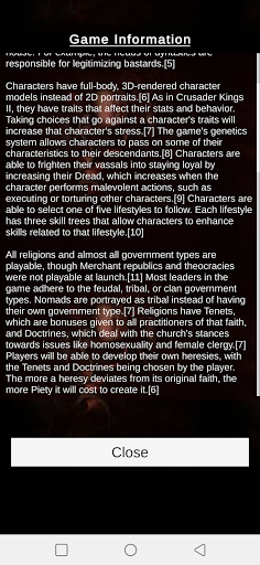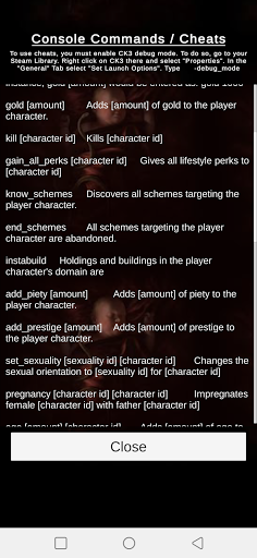 Need to remove a rival? Need to boost a stat? What about having a baby? Do all this and more with the Crusader Kings 3 Console Companion app. This app is a collection of console command and how to use them, tips and tricks in how to navigate the game efficiently, tons of game information about Crusader Kings 3 Itself, and also allows you to get even more information in the form of video or the official Wiki efficiently and easily!