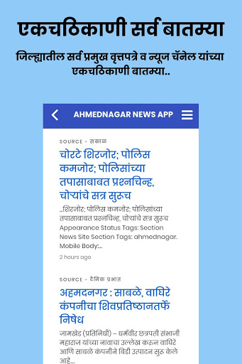 This local news app coverage and updates on Local news, Politics, Entertainment news, Sports, Health, Jobs alert and much more. This app to Get Ahmednagar today Breaking News on your Smartphone in Marathi language from trusted news sources. Our News app has ‘News links’ from many top newspapers sites and channels. In this app we have provided only news links. We do not re-edit or re-publish any of news information.