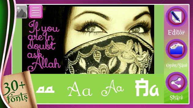 a unique “photo editor” which provides you with a chance to add text on pictures like never before! If you're looking for a perfect photo text on image app, you're at the right place! Create amazing photo art with text on photo image editing app for Android! No need to go to a photo studio when you can type a text on your pictures with ease. Add love messages, funny quotes, and sayings about life to your fabulous pics and share your pics art on all social networks – Facebook, Twitter, and Instagram! Take a selfie with your beauty camera or choose an image from your photo gallery – the choice is entirely yours! Let the photo fun begin! Islam Photo Writer Studio is waiting for a photography fan like you!
