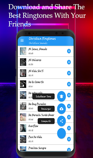This application has a large collection of the best Christian music sounds and hits for Android phones. All songs have been personally selected so you can download the best collection of Christian music sounds and ringtones for your phone, you can download the file in mp3, share the sounds on social networks or set your favorite song on your phone Android You can set it as ringtone, SMS sound, alarm sound or notification sound; Remember that you will not be able to listen to the sounds offline, without an Internet or Wi-Fi connection, since it is necessary to download the mp3 files.
