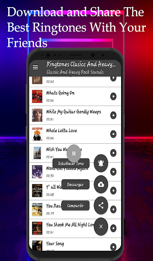 This application has a large collection of the best sounds and ringtones of classic Rock and Heavy Rock music for Android phones. All the songs have been personally selected so you can download the best collection of sounds and ringtones of classic Rock and Heavy Rock music for your phone, you can download the file in mp3, share the sounds on social networks or configure your song favorite on your Android phone and you can set it as ringtone, SMS sound, alarm sound or notification sound; Remember that you will not be able to listen to the sounds offline, without an internet or Wi-Fi connection, since it is necessary to download the mp3 files.