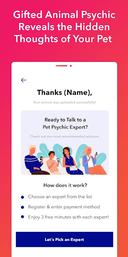Using the Animal Psychic app is easy and will allow you to gain a deeper understanding about your pet’s behavior using our expert pet reader. Simply download the app, upload a photo of your pet, and talk to an online expert pet psychic of your choice to have all your questions answered. Your first 3 minutes are FREE!