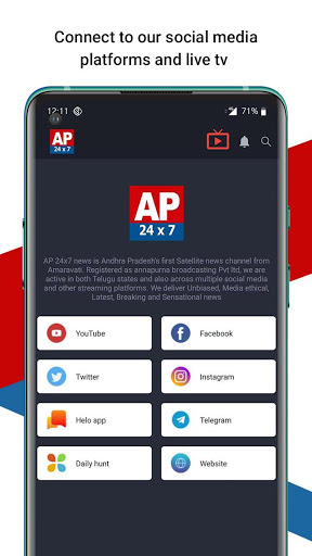 The official AP 24x7 news app brings you the latest Stories and articles from AP 24x7 newsrooms. Stay connected with the latest news from telugu states and around the world. Get easy access to our live TV and social media platforms.