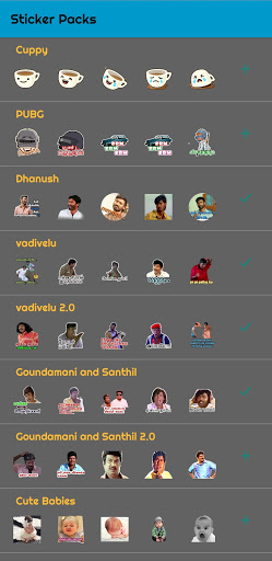 Tamil Stickers - WAStickerApps(All in one) in Free and Third-Party Service and its Help to make More Spicy Your Chat Conversations and More Interesting to chat your Best Friends & College Groups less in Text with full of Trending and Famous Tamil Dialogues. Our Each Sticker packs are Less than 500kbs only.