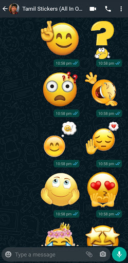 Tamil Stickers - WAStickerApps(All in one) , WhatsApp application helps to easily express your emotions, send stickers on WhatsApp instead of emoji, keyboard type and make your overall chat looks more fun than the usual text and emoji. You can even use these stickers to reply on status & groups. Our sticker packs are small and light weight, and you can add them easily to your collection to share & chat with others.