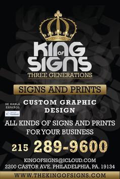 King of Signs, Philadelphia. We offer all kinds of signs, Printing and Custom Graphics. We offer installation of all products.