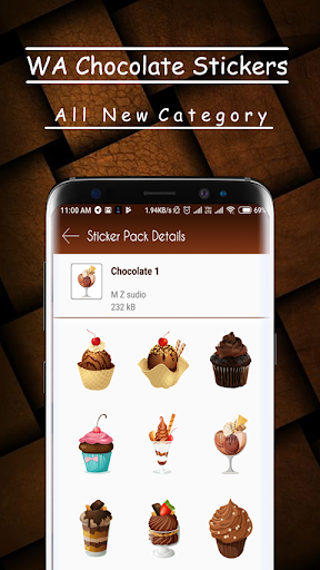 - Open app select Chocolate sticker pack select or choose the category