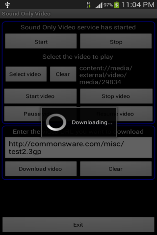 To configure, tap Start to start the Sound Only Video Service. Select your video clip and tap Start play video.