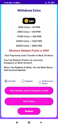 You Withdraw Jazz Cash, Easypaisa And Bank account.