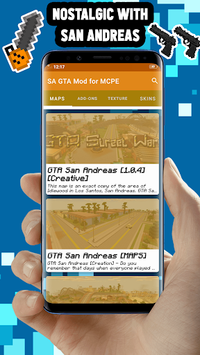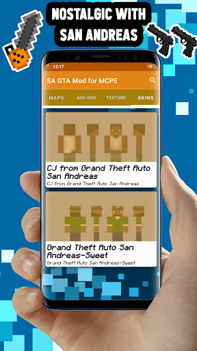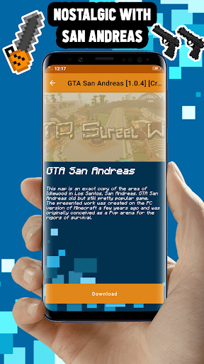 Maps from GTA San Andreas is a replica of the City of Los Santos in the GTA SA game, with the Los Santos Stadium, The Los Santos Bridge and the Business district you will explore it all and almost the same as the original. Grand Theft Auto SA in MCPE consists of mods/addons & maps for MCPE that you can get such as skins from Sweet, Big Smoke or Rider. In addition, you will also get weapons mods and guns such as pistols, grenade launchers, bazookas, rifles and shotguns.