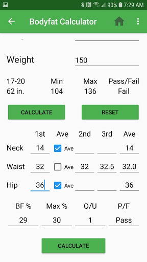 You can input the three measurements required by AR 600-9 or click the Ave checkbox to automatically average the initial input.