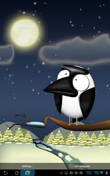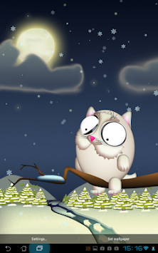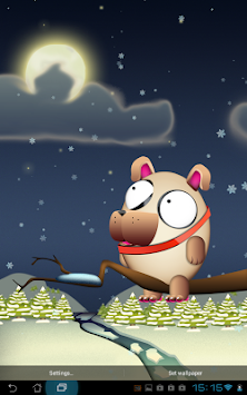 When you look at your Wildy live wallpaper you cannot keep from smiling! The character is watching your every move on the screen while sitting on a branch of a tall tree in a winter forest, amid the clouds drifting in the light of bright full moon. Only this little animal knows why he got there!