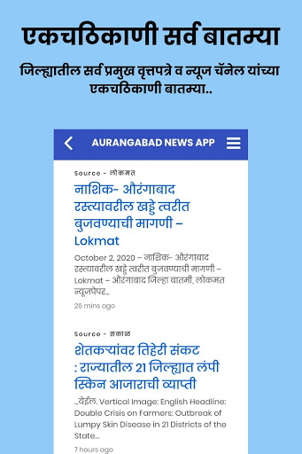This app to Get Aurangabad today Breaking News on your Smartphone in Marathi language from trusted news sources. Our News app has ‘News links’ from many top newspapers sites and channels. In this app we have provided only news links. We do not re-edit or re-publish any of news information.
