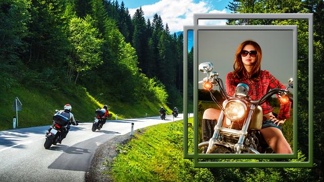 The newest Motorcycle Photo Frames will take you to the top of the hill where you can enjoy the view on the village and distant fields and mountains and you can notice smoky clouds that roll over them. There is nothing better than going on an adventure with your favorite vehicle and being free. Suit a photograph from that kind of a road trip into one of these awesome photo frames and turn it into a work of art. If you want to make it even better, apply cool photo effects or add a photo text. There are so many possibilities of what you can do with this popular photo editor and it is certain that you will have a lot of fun with it. Once you make multiple pictures, you could set your photo gallery as a photo widget and have all your photos close to you every time you unlock your device. Don’t waste time anymore and download the best Motorcycle Photo Frames right now. They are absolutely free of charge, so there’s nothing stopping you from using them!