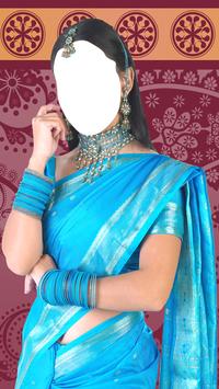 A lot of different photo frames are at your disposal and you can try all of them. What do you think of the blue one with edges with shiny decoration on the edges? You could wear blue bangles with it and head jewelry with golden details. You will look very beautiful when you wear saree, regardless of the type or design, because there is something special about this garment which makes every girl pretty. You don’t need to have a lot of experience in photo editing if you want to use the latest Sarees Photo Montages. All you have to do is to select a selfie from your phone or tablet and adjust it into a photo frame that you like the most. Then resize or rotate the picture if it’s necessary and that’s it! It only takes few swipes for you to make the coolest image. You could also share the best Sarees Photo Montage with your friends and tell them all about this popular application.