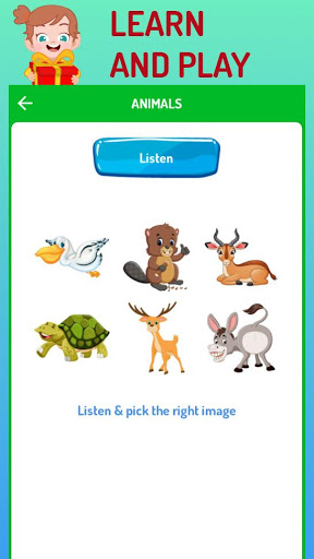 This app shows various section like English Alphabets, English Numbers, English months, Week days in English, Fruits & Vegetables ,Food, Cloths,Flowers, Vehicle,Birds,Animals,Colors,Shapes Jobs, Computer, Season, and Directions also Games for kids.