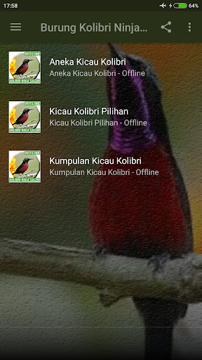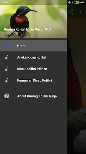 Suara Kolibri Ninja Gacor durasi panjang Mp3 offline : aneka kicau burung kolibri ninja ngerol durasi panjang. Ayo para pecinta burung kolibri ninja untuk segera mencoba dan menginstal aplikasi yang satu ini. Dalam aplikasi ini anda dapat menemukan berbagai makan suara burung kolibri ninja gacor ngerol durasi panjang mp3 offline. Aplikasi Suara Kolibri Ninja Gacor full isian Mp3 offline ini bisa dijanlankan tanpa internet jadi jangan kuwatir karena paket data anda akan tetap utuh.