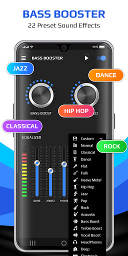 Bass Booster & Equalizer is an all-in-one equalizer that improve the sound quality of your android device with the Bass Boost, Virtualizer and Equalizer. Make your music and video sounds like never before!