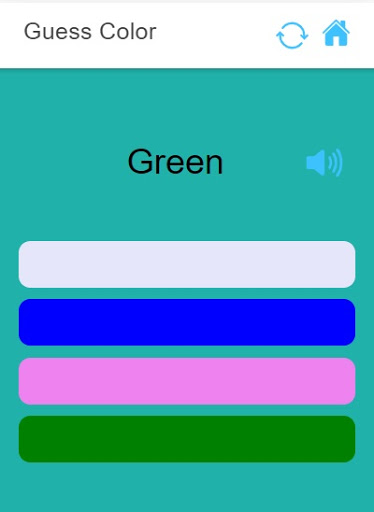 kids/children can guess the color my given name or pressing volume button after hearign color name and then select correct option from given four colors.