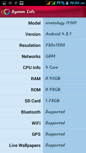 - Battery, RAM, ROM, CPU & Internal Storage Info and more..!