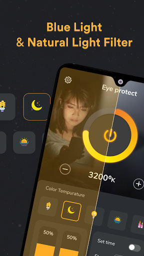 Eyes Protector: Adjust screen brightness, eye care is an optimal blue light filter created to provide all screen filter in order to ensure eye care against light blue wavelength from screen brightness and give you pleasant night reading while curing sleeplessness after twilight with night mode. Blue light filter was already, adjust brightness moreover when Blue light filter on this app. Blue light from your smartphone or tablet causes strain your eyes and prevents you from falling asleep easily at night. Eyes Protector was helpful at night as it adjust brightness much more than the lower limit on notification panel brightness slider. Screen filter is used to reduce blue light by adjust screen to natural color. Shifting your screen to night mode can relieve your eye strain, and your eyes will feel at ease during night reading to protect your eyes. Also blue light filter will protect eyes and help you sleep easily.