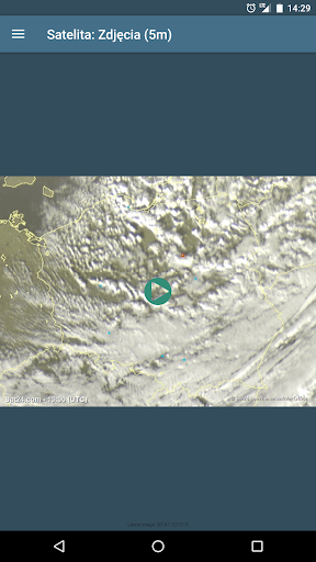 W aplikacji w formie animacji dostępne są:: Mapy Satelitarne (zdjęcia), Mapy Satelitarne w podczerwieni. Mapa Opadów, Mapa Wysokości chmur, Mapy wyładowań z serwisów Lightningmaps.org i Blitzortung.org. Animacja z 3 ostatnich godzin wyświetlana jest z opóźnieniem 5-15 min. wynika to z częstotliwości udostępniania danych w serwisach.