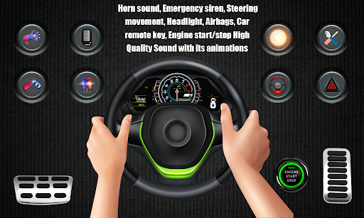 In the Engine Sounds : Car Simulator, You get a realistic experience of the car's horn sound, Emergency siren, steering movement, Headlight, airbags, Car remote key, Engine start/ stop High-quality sound with its animations. You get realistic feels like driving a car.