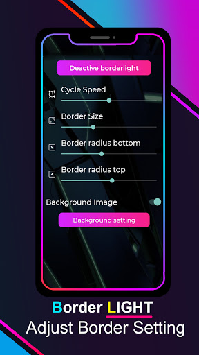 This Mobile Border light wallpaper Edge beautiful curved rounded corners and light on your mobile home screen and lock screen. It is border edge light is show moving curving multi-color border light on your mobile screen frame lighting. The Border light live wallpaper app is totally different from other regular live wallpaper full HD apps. This is Edge Lighting Border Across Moving your screen best border light mobile edge lighting decorative app live wappaper