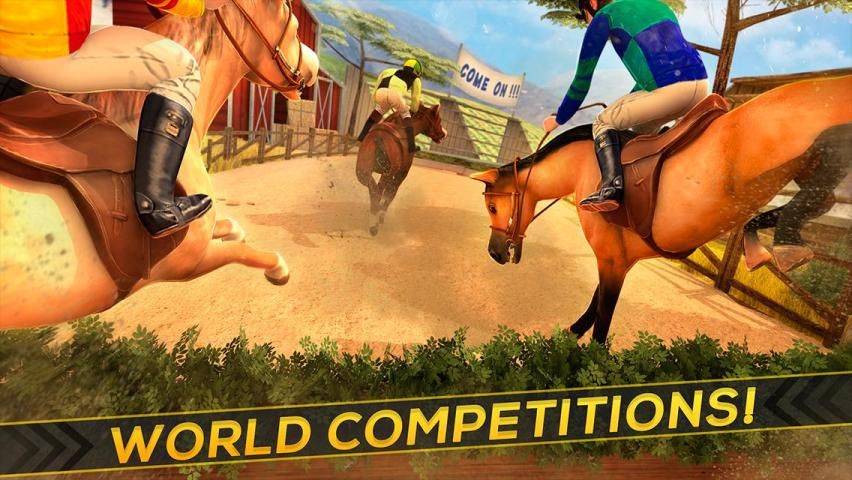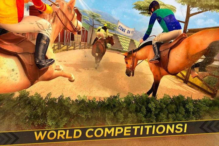 Go beyond and play in a world racing championship and show your friends and other competitors who is the best rider in the whole world, and remember you need to be careful and don't fall off your horse. Compete against them from all over the world and have crazy fun playing Horse Derby Riding Champions. Play with our easy to use controls mode in this jumping horse simulation game.