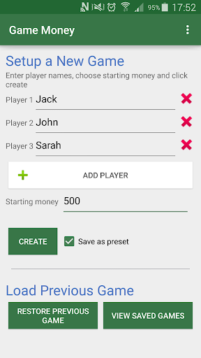 NOTE: This app is NOT a game. It is a way of keeping track of players money for a game.