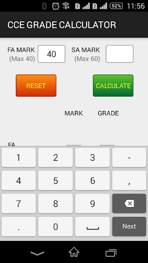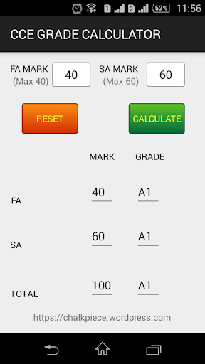 FA Grade, SA Grade, Total Grade and Total Mark can be easily calculated on entering FA and SA marks.
