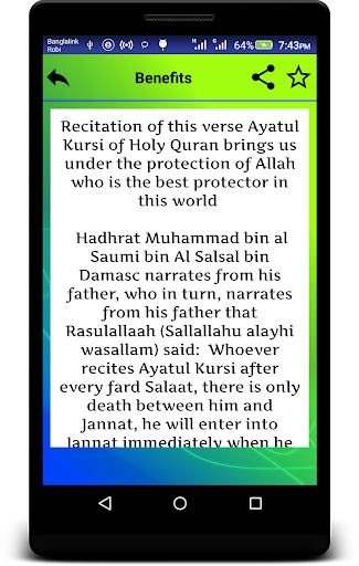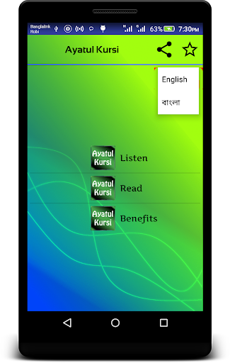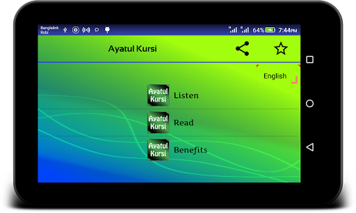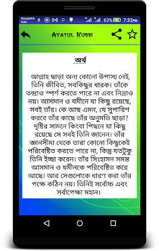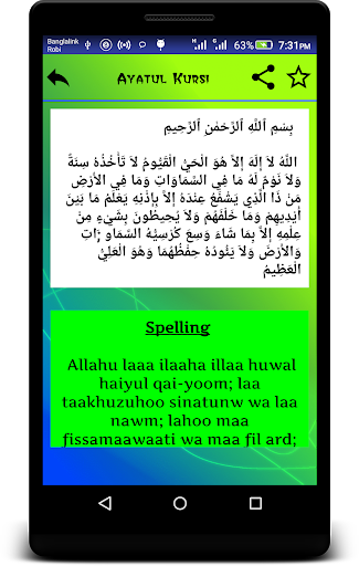 Spelling & translation of Ayatul Kursi also added with MP3 both in English & Bangla text. You can listen and read Ayatul kursi at a time.