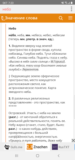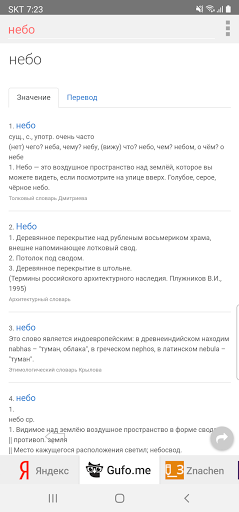 U kunt in alle Russische woordenboeken tegelijk zoeken. U kunt tijd besparen en verschillende woordenboeken vergelijken. Het is erg handig.Probeer het alsublieft.