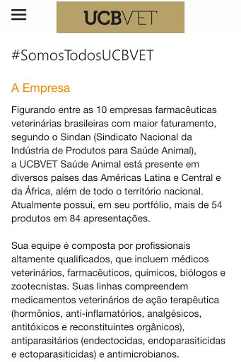 A UCBVET Saúde Animal figura entre as 10 empresas farmacêuticas veterinárias brasileiras com maior faturamento, segundo o Sindan (Sindicato Nacional da Indústria de Produtos para Saúde Animal).